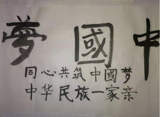同学们的作品风格迥异,思路新奇。首先有“中国梦”的书法,作品苍劲有力,体现了大家同有一个中国梦,那就是使国家更加繁荣昌盛。映入眼帘的摄影作品是绚丽多彩的少数民族服装,不同的服装颜色和搭配代表着不同民族的历史和文化,也印证了五十六个民族团结一致、幸福安康的生活在这广阔的土地上。流光溢彩,繁荣盛世彰显我国的强大的经济实力,红色的灯光照耀着中间的大路,展现了我们国家未来的发展将会更加辉煌。