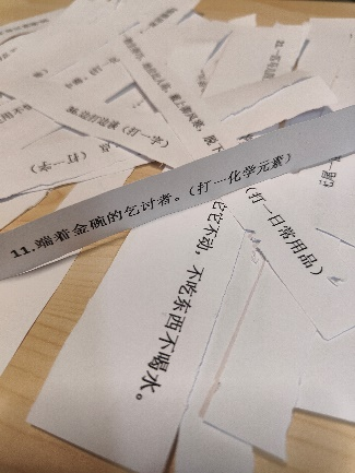 从猜字谜到猜俗语,从猜日常用品到猜化学知识,涉及知识面极广的近百条灯谜带同学们领略着中华传统文化的独特韵味。