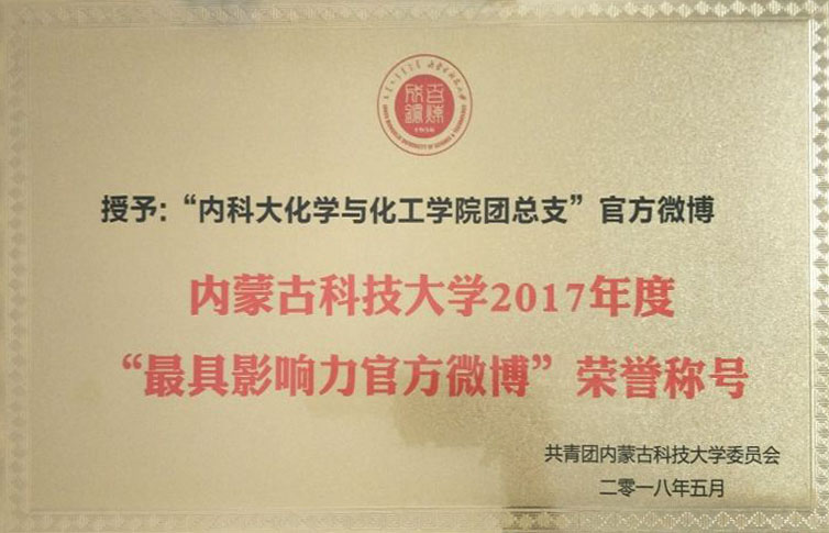 pp电子游戏平台网站团总支官方微博自2015年3月31日开通以来一直致力于为全院师生提供信息,并在宣传推广校园文化、舆论应对引导等方面发挥了不可替代的作用,在2017获得“最具影响力官方微博”称号。