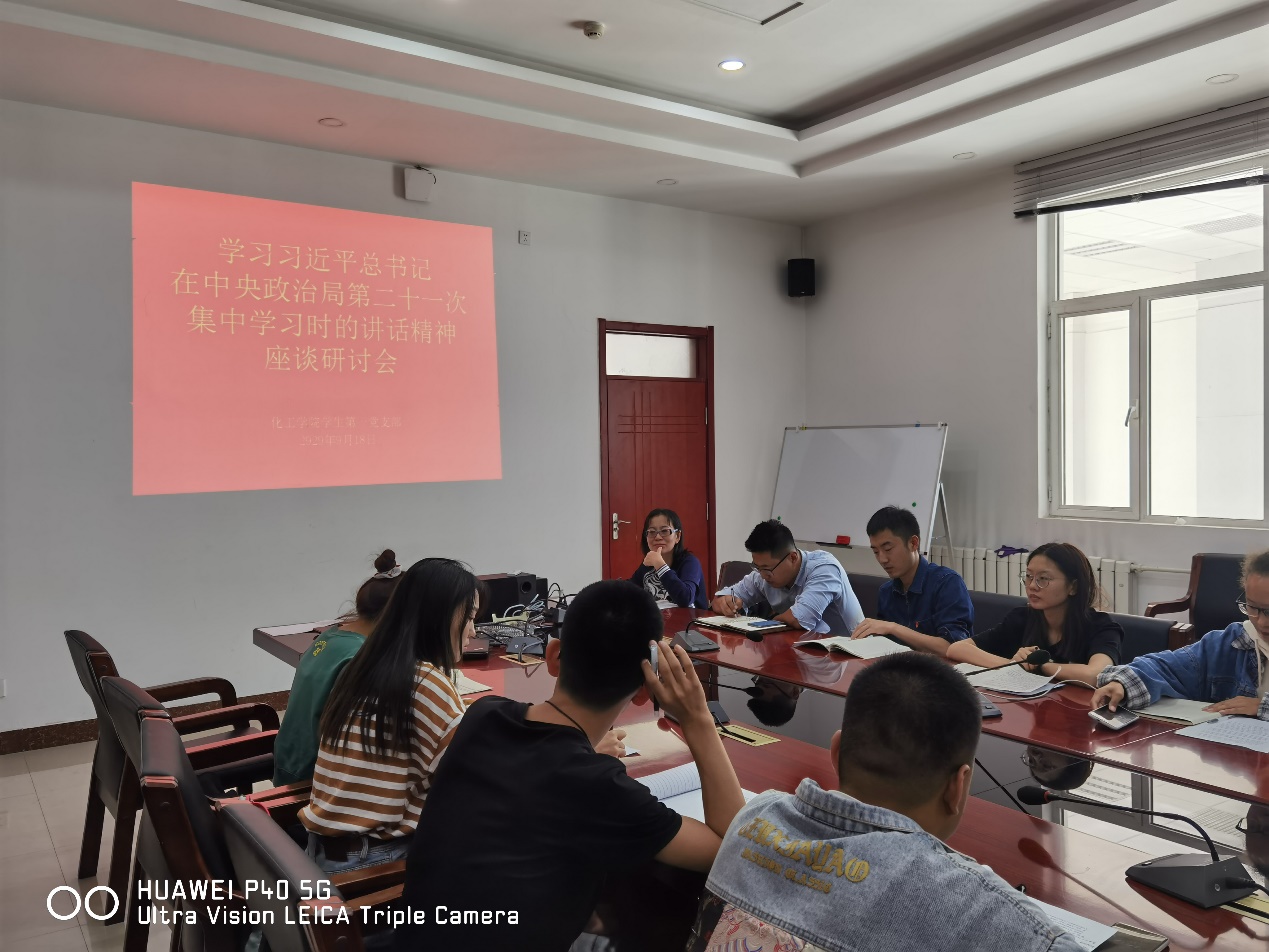 2020年9月17日中午12:45,pp电子游戏平台网站学生第一党支部在逸夫楼E202召开“学习习近平总书记在十九届中央政治局第二十一次集体学习时的讲话精神”座谈研讨会。会议由党支部书记王涛老师主持,观察员能源与环境工程学院党总支副书记孙岩柏老师参加了会议。