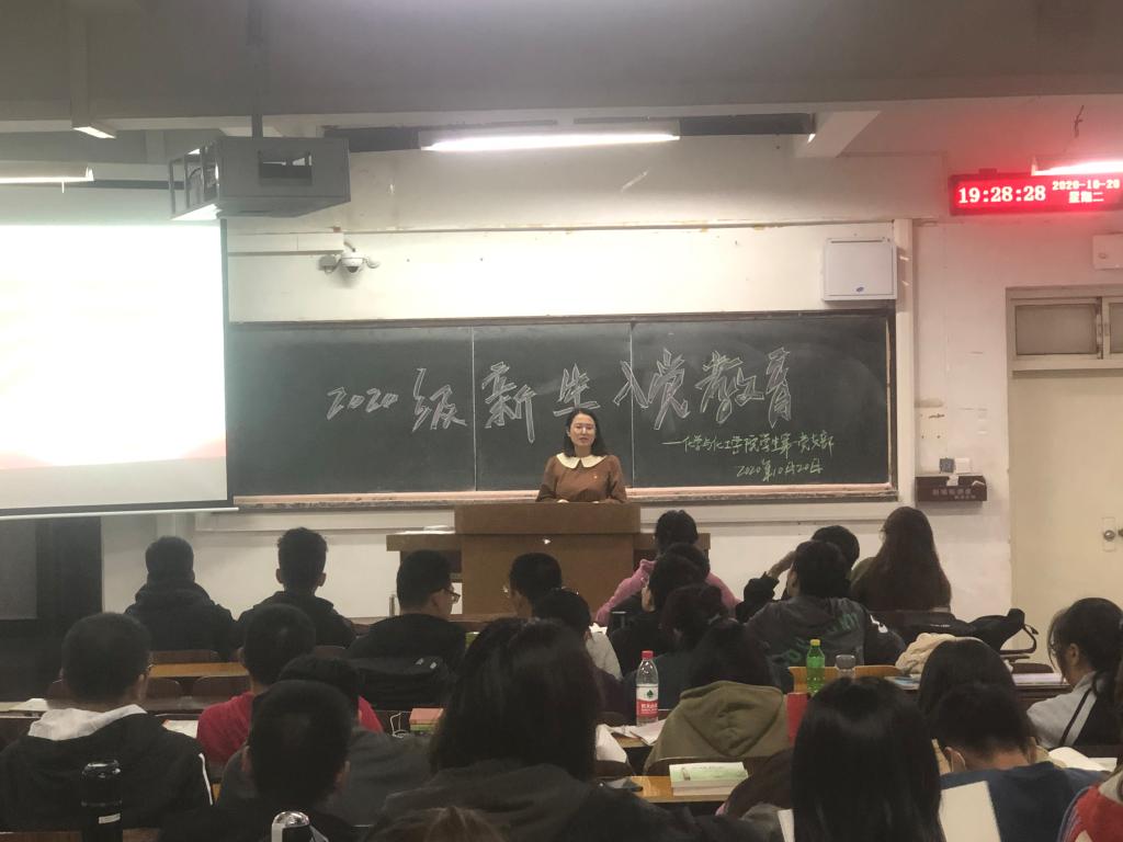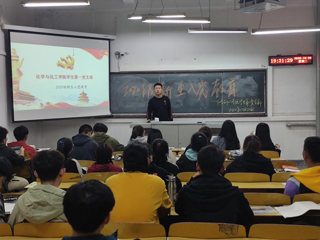 2020年10月20日晚19:30pp电子游戏平台网站学生第一党支部在春晖学堂组织开展了2020级化学工程与工艺专业全体新生入党教育活动。此次活动按照班级发分三组进行,分别由组织委员张旭、宣传委员王桂娜组织开展。