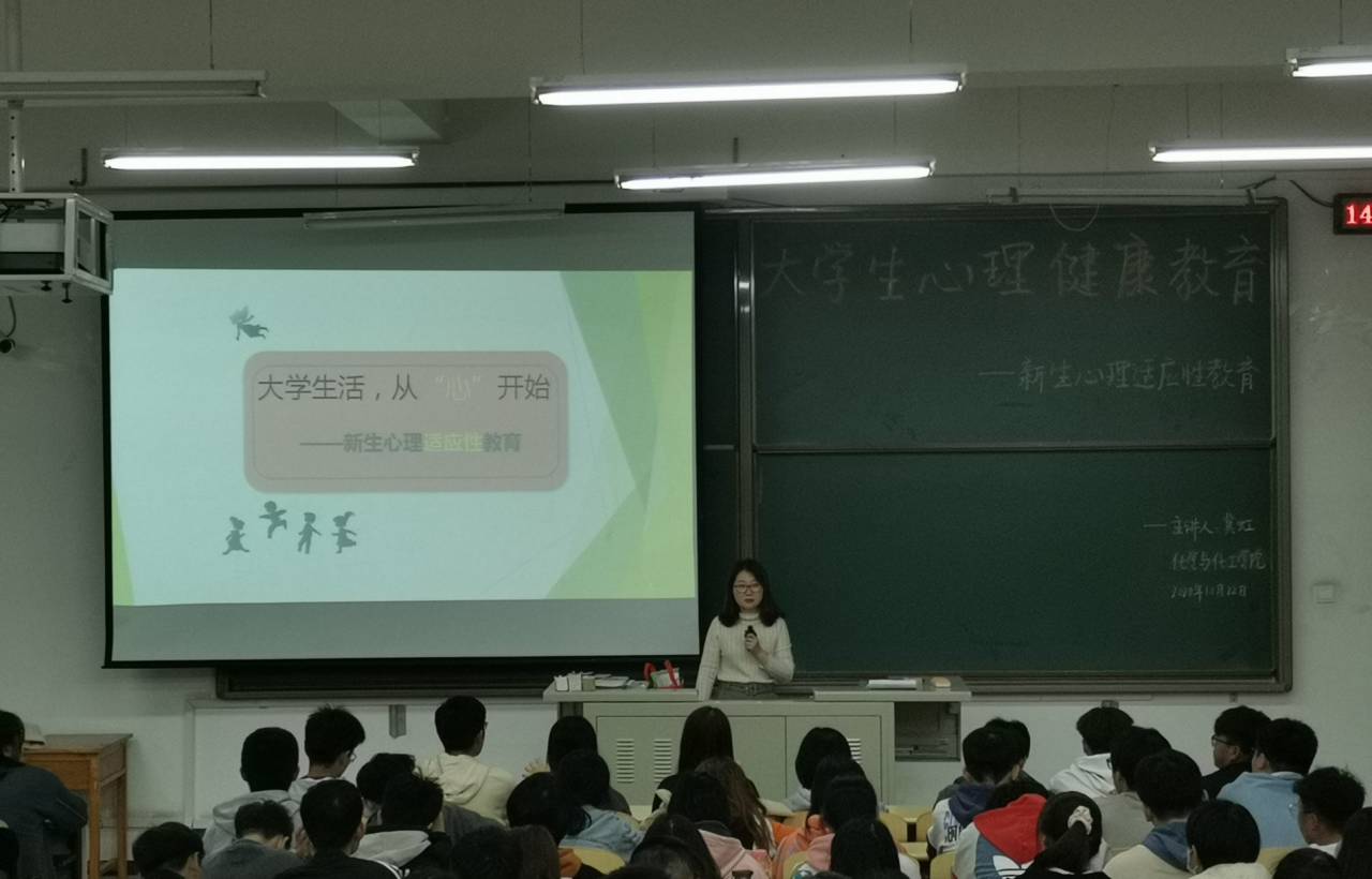 讲座以“大学生活,从‘心’开始”为主题,从“大学生常见的心理问题”、“为什么会出现这些问题”以及“面对这些问题我们该怎么做”几个方面展开。两位老师以生动的案例,列举出大学生常见的心理适应问题,教育引导学生首先要正确认识进入大学后,学习、生活以及人际关系发生变化的事实;其次要正确面对因各种变化出现的心理适应问题;最后学会自我调适和寻求帮助。讲座过程中,老师通过提问与学生互动,让学生积极思考从而更好地理解讲座的内容。