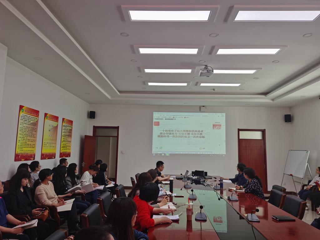 2021年4月8日下午14:30,pp电子游戏平台网站在逸夫楼E202会议室开展教职工政治理论学习。全体教职工参加学习。本次学习内容为:《一百堂党史课》。