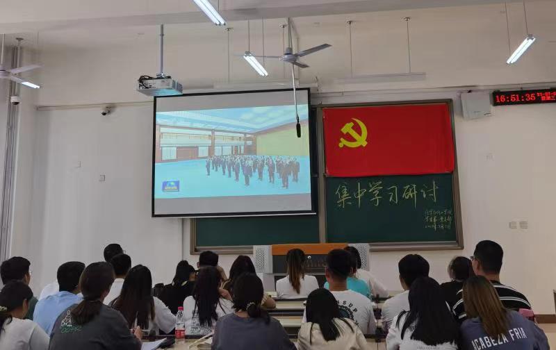 2021年7月7日下午16:30,pp电子游戏平台网站学生第一党支部组织全体党员在明德楼H110开展集中学习研讨。