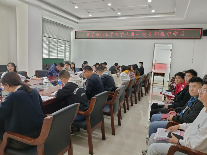 10月18日下午3:00学生第一党支部在逸夫楼E202会议室开展集中学习。