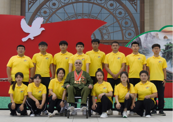 2022年7月30日,是一个让pp电子暑期“三下乡”社会实践直属队心潮澎湃、热血沸腾、为之感动、为之动容的一天。在八一建军节来临之际,直属队队员见到了一位老兵,一位参加过解放战争和抗美援朝的共产党员。经过前期沟通,尊重老人的意见,直属队在乌兰牧骑宫慰问并听爷爷讲烽火岁月的故事。