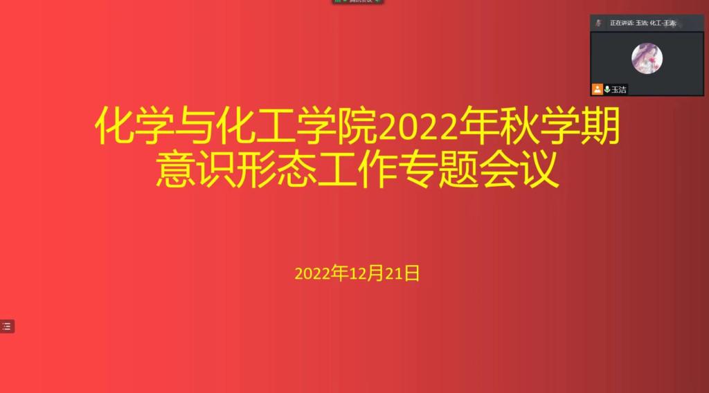 2022年12月21日下午15:00,pp电子游戏平台网站召开“2022年秋学期意识形态工作专题会议”。会议由学院党委副书记副院长王涛主持,学院领导班子成员、各系部室主任(负责人)、全体辅导员、班主任参加会议。