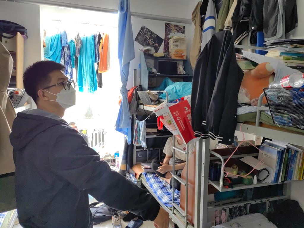 在走访学生宿舍的过程中,各班主任、辅导员与同学们充分交流,深入了解同学们的学习生活情况,认真检查宿舍卫生、消防安全、用电安全等相关事宜,指出当下宿舍中存在的问题,提醒同学们及时整改,并向身边的优秀宿舍看齐,积极努力创建“文明宿舍”。同时,走访宿舍的各位班主任、辅导员还教育引导广大同学们自觉遵守校规校纪及学生公寓管理制度,杜绝晚归、夜不归宿、在宿舍吸烟、酗酒等不良行为,养成良好的卫生和生活习惯,展现科大学子良好的精神风貌。