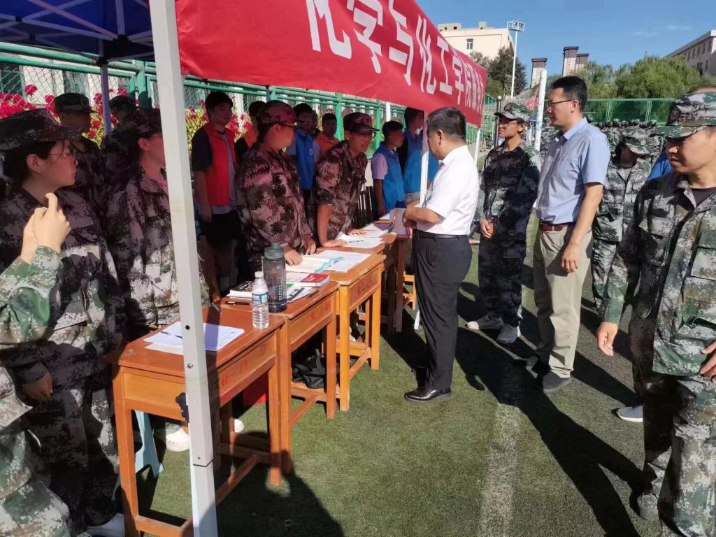 9月12日下午,校党委副书记冯志强、党委学生工作部(学生处、人民武装部)部长韩冰及pp电子党委书记罗强等一行来到军训现场,检查指导2023级新生军训工作,并看望和慰问参训教官及师生。