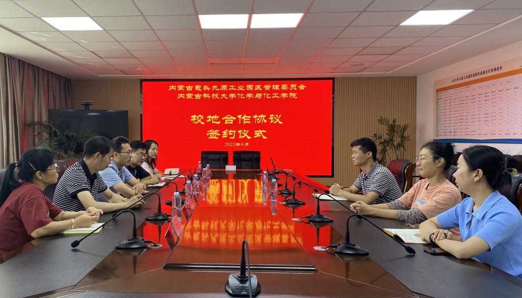 9月15日上午,pp电子党委书记罗强一行6人赴包头市九原工业园区管理委员会调研交流并参加校地合作签约仪式。九原工业园区管理委员会应急管理部部长刘伟嘉及相关工作人员参加本次活动。