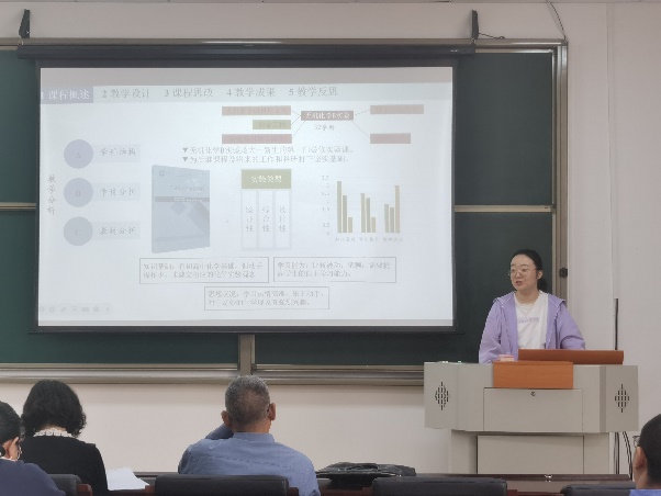 赵悦、白佳权、艾晶、周蔚、王丽等5位教师展示了参赛课程的课堂教学设计和现场说课情况。各门课程教学内容呈现恰当,教学活动组织合理,教学设计突出学生主体地位,将思想政治教育和专业知识传授相融合,展示了良好的专业素养、科学精神、人文情怀。