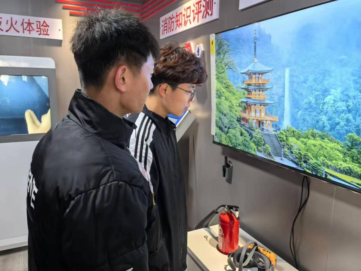 活动中,通过现场互动体验的方式对青年团员进行了消防知识的强化科普,项目涵盖电动车火灾隐患演示、油锅起火扑灭演示、VR逃生与灭火体验、消防知识问答、模拟报警体验以及体感换装装置等。