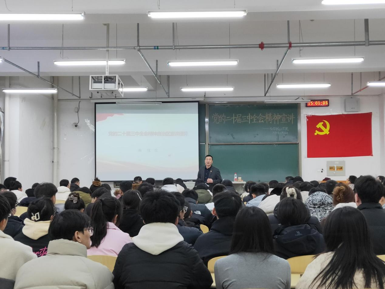 为进一步推动党的二十届三中全会精神入脑入心、走深走实,让广大党员全面深刻领会全会精神,12月26日下午,pp电子在逸夫楼G203举办党的二十届三中全会精神主题党课,院党委书记杨包生主讲,学院100余名师生党员参加。