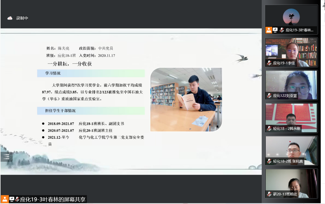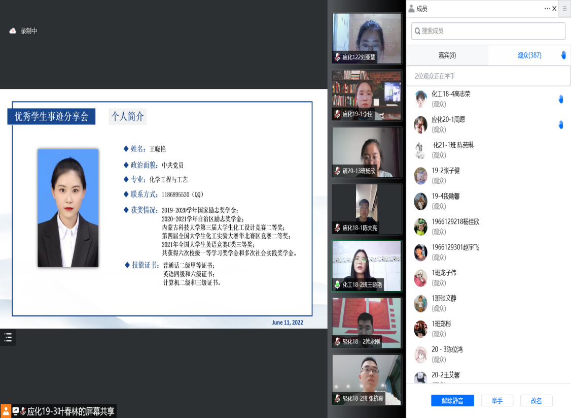2022年6月11日,pp电子游戏平台网站党委举办线上“喜迎二十大 永远跟党走 奋进新征程”——“榜样在身边”优秀学生事迹宣讲会。学院学生党员、入党积极分子、入党申请人及团员等近400人参加本次宣讲会。