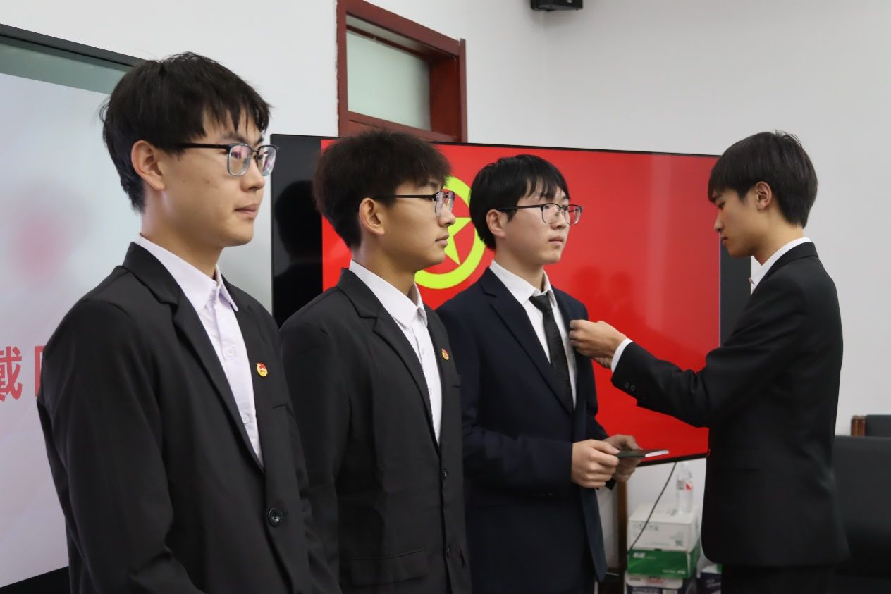 伴随着雄壮而庄严的国歌声,入团仪式正式拉开帷幕。全体师生肃立,齐声高唱国歌,激昂的旋律中饱含着对祖国的无限热爱与崇高敬意。团总支副书记(学生)宣布新团员名单,并为新团员颁发团员证及佩戴团徽。所有团员面向团旗,高举右拳,庄严宣誓。